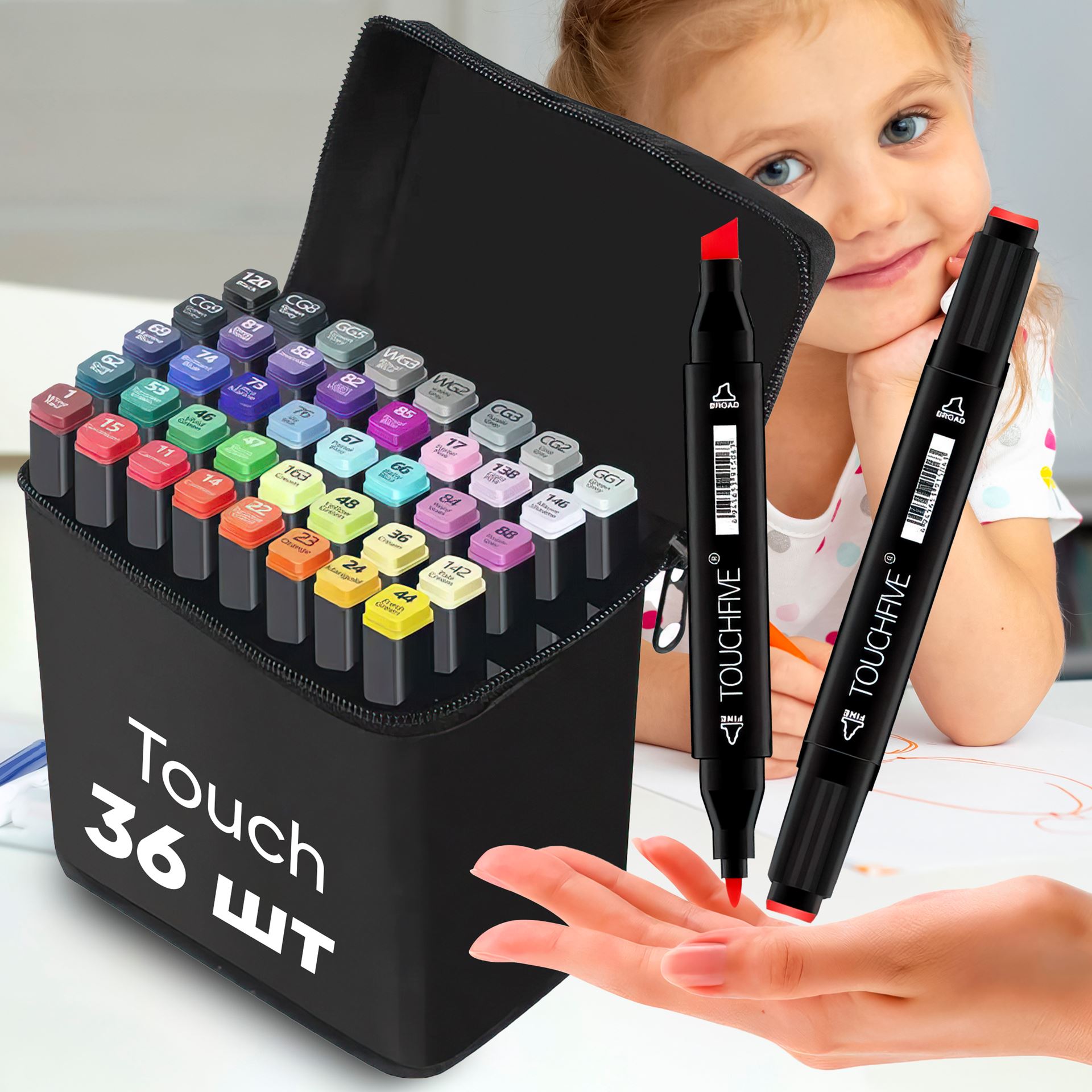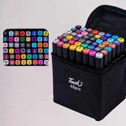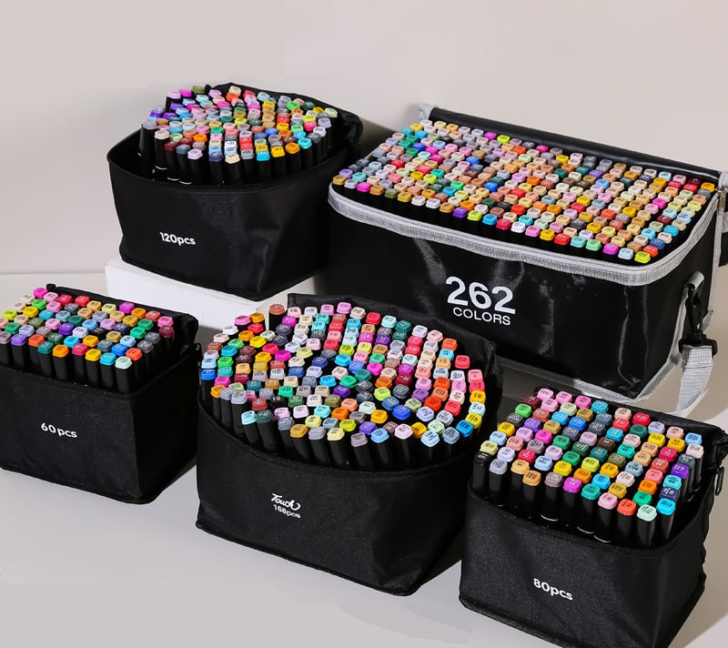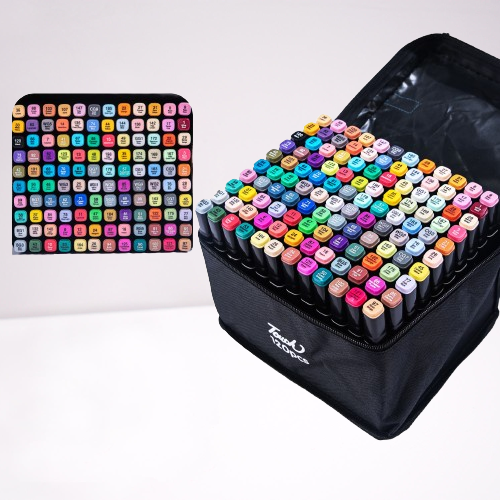 Це високоякісні двосторонні маркери, створені для художників, дизайнерів та всіх, хто захоплюється творчістю. Вони поставляються в зручному кейсі для зберігання та чудово підходять для різних технік — від швидких замальовок до деталізованих ілюстрацій.